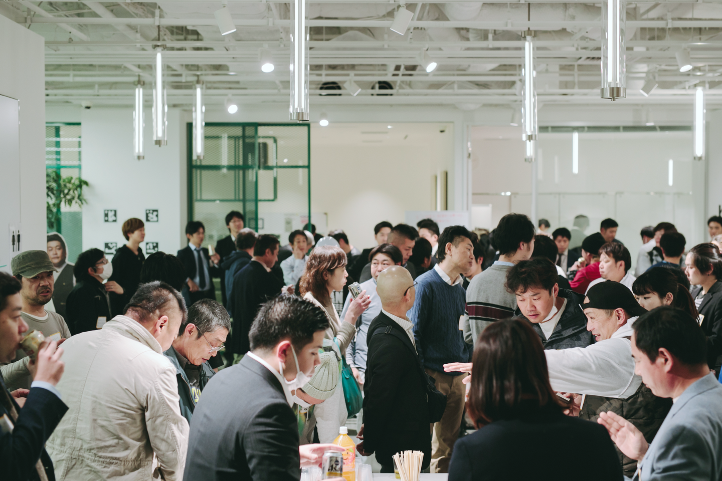 工務店の社長さんから現場終わりの職人さんまで、続々と到着し、あっという間に会場がいっぱいに。