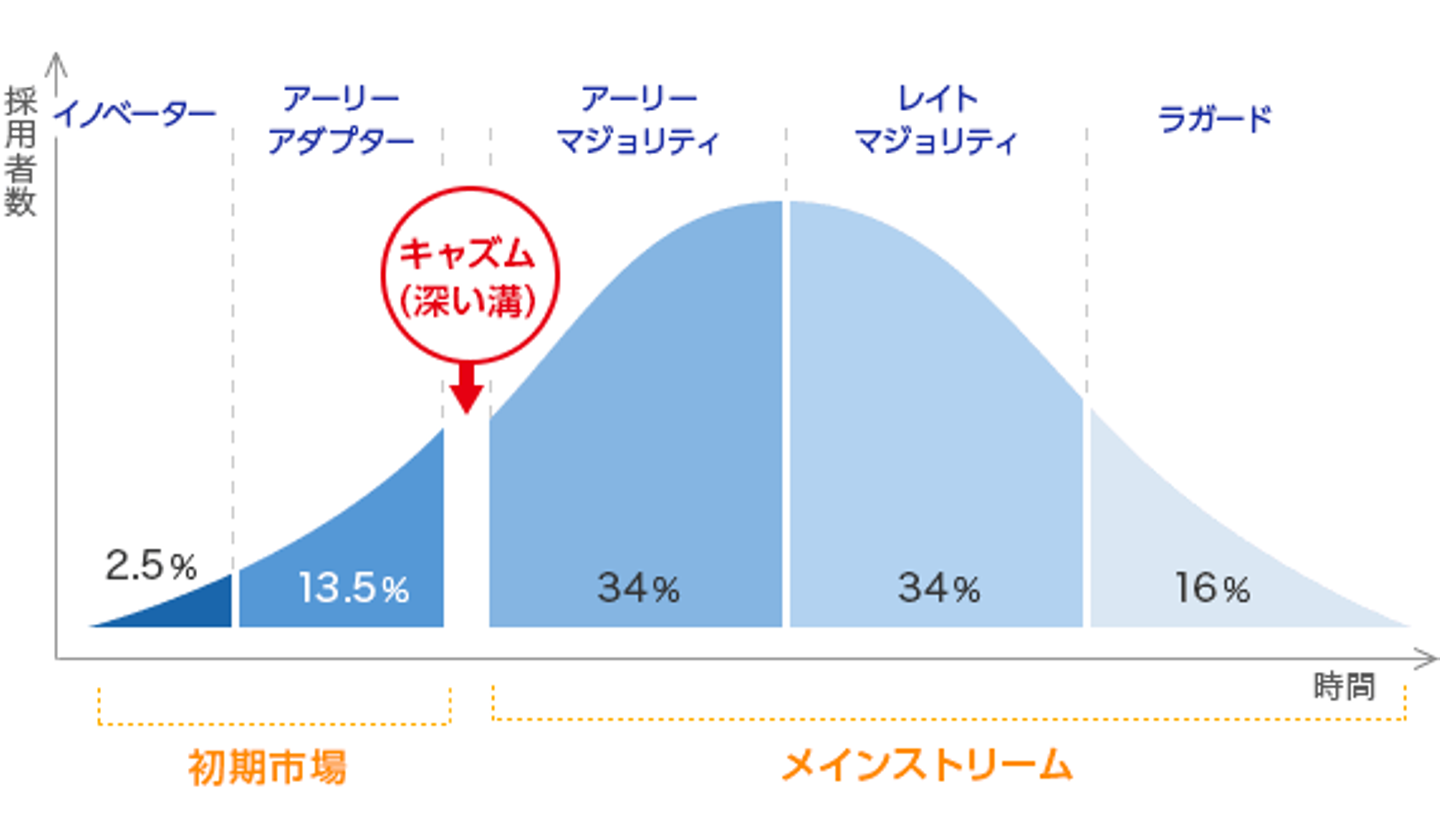 ただこの数字は見方を変えると、イノベーター理論のメインストリームに位置しており、 キャズムを超えていく(市場に普及させる)フェーズではもうありませんでした。 これからのクラシルは10→100のフェーズ、一方で僕が求めたのは0→1 or 1→10のフェーズで 当事者として事業を作り上げていく環境 であったので転職を決意しました(※フェーズの捉え方は個人的なものです)。