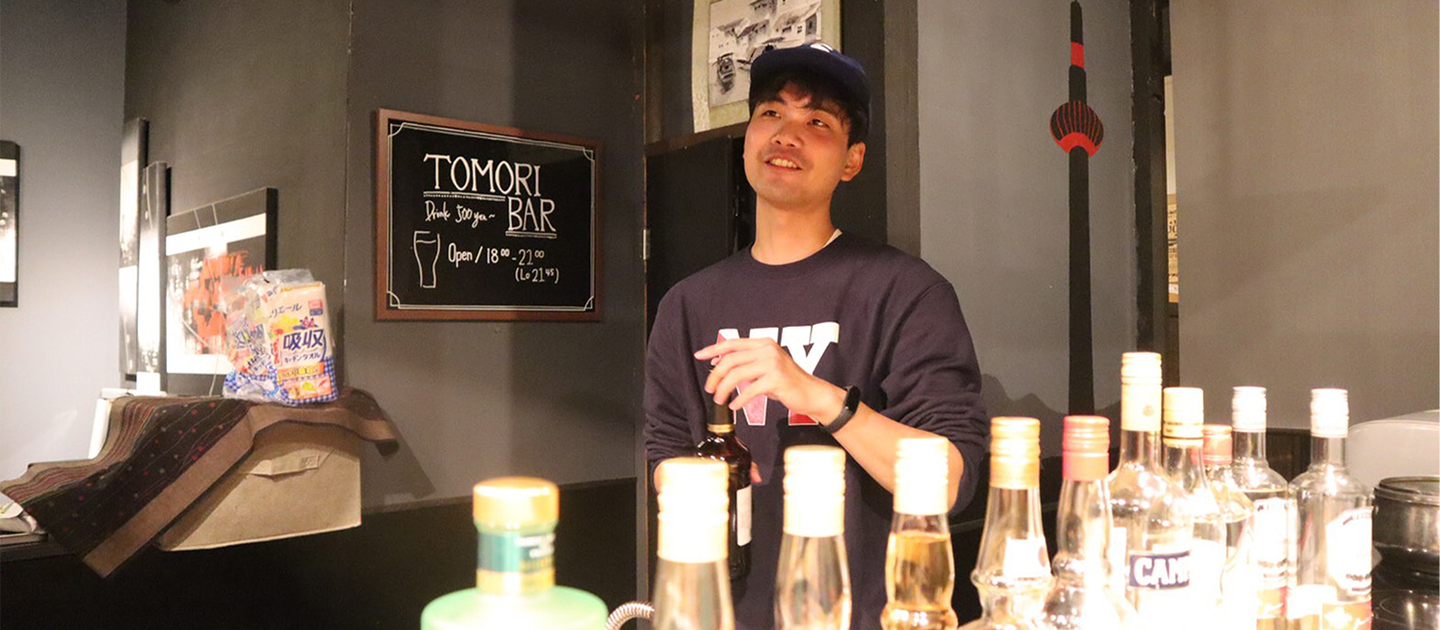 大学生活では、ゲストハウスでアルバイトをしたり、学科の新入生研修の運営統括をしたり、ニューヨークに留学したりしていました。