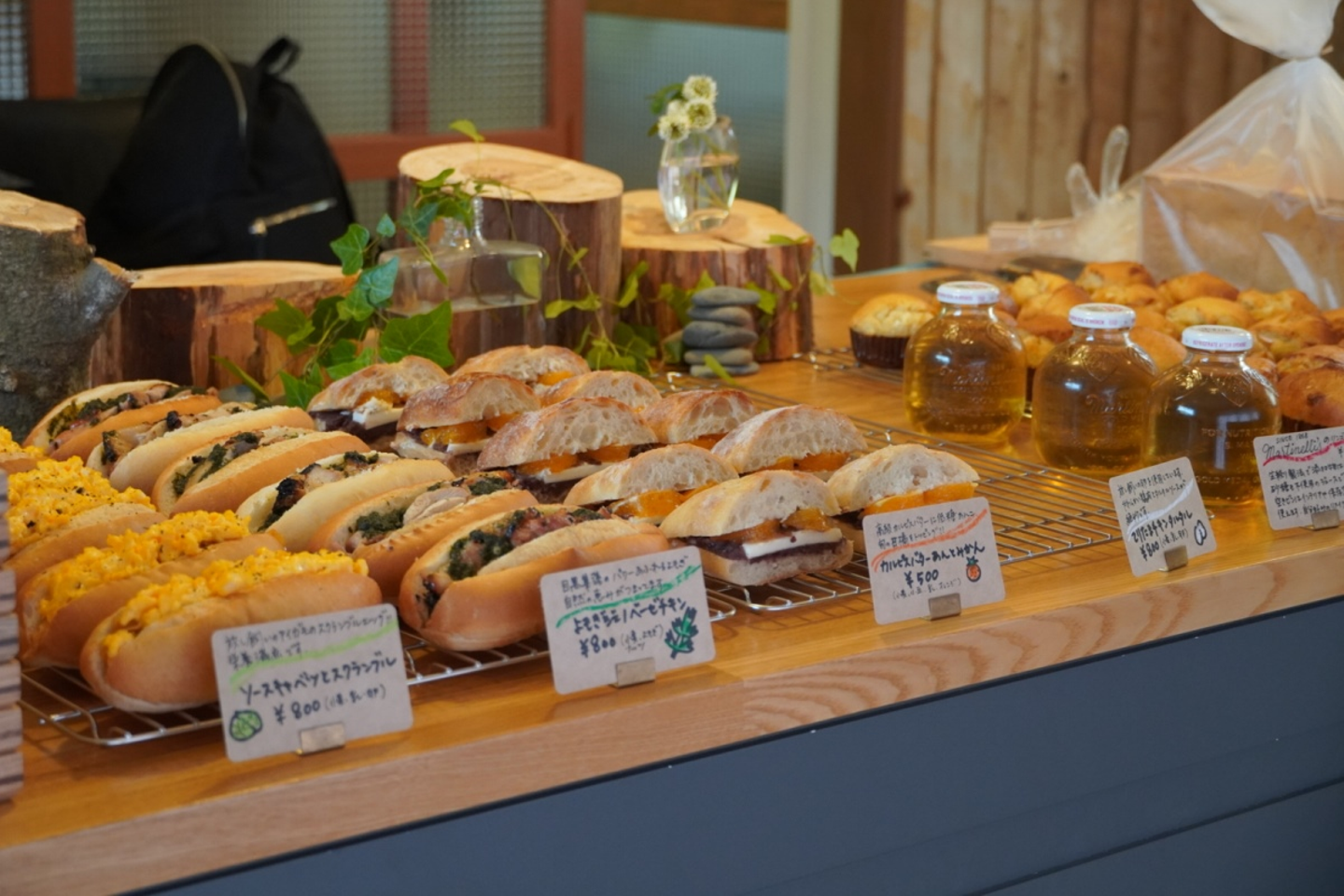 「森とパン」は2023年4月にリニューアルオープンしたばかり。「子どもに食べさせたい安心安全な食を発信する場」として、松野町に自生する野草や自然栽培野菜を使用したサンドイッチなどを用意している。これからはパンだけにとどまらず、高山さんが中心になって店内での物販を充実させていく予定だという。