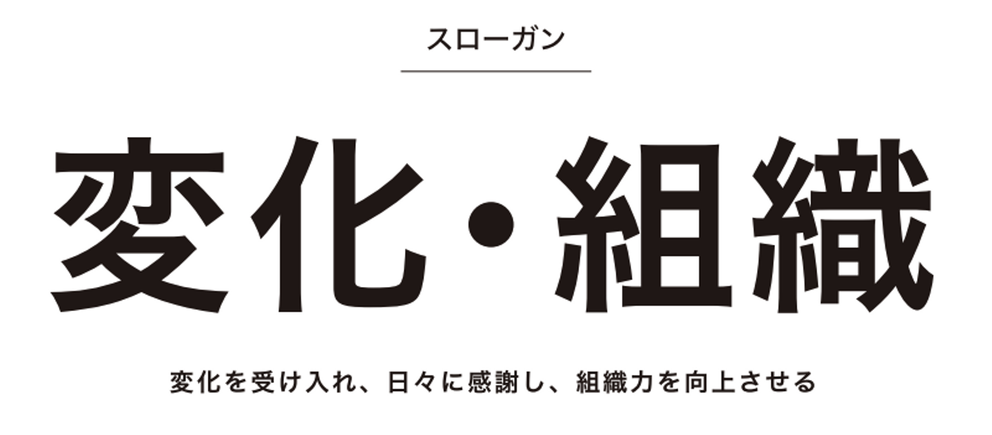 常に変化を受け入れ、日々の仕事に感謝の気持ちを抱き仲間と共に前進できる会社組織のとなる。
