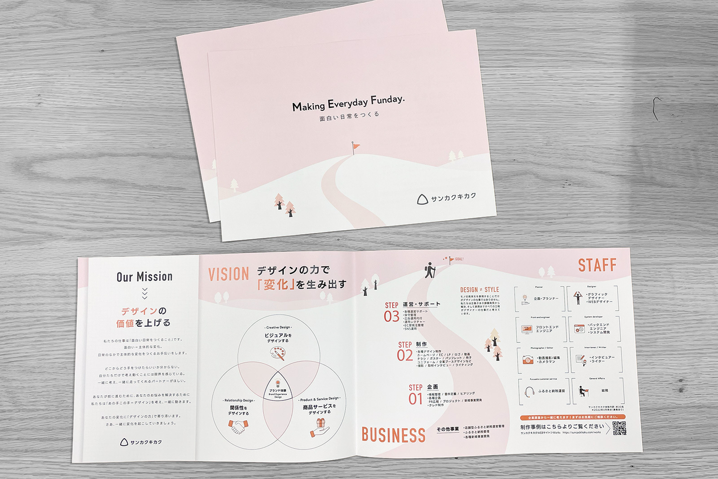 参加した他の学生の方も言っていましたが、インターンシップに参加する前は5日間って結構長いなぁと思っていましたが、最終日にはあっという間だったなと感じました。ですが、その間にも課題や会社の方とのコミュニケーションを通して、デザイナーとしてしっかり学ぶことができたと実感しています。サンカクキカクさんで一番学んだことは、文章や写真の大きさや配置にも全て意味があるということ、もう一つは、インプットした物をアウトプットする、伝えることの重要さを学びました。