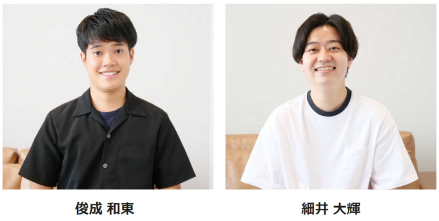 俊成:失礼ですよね(笑)。OJTのペア発表で新卒のメンバーを見たとき、僕は細井くんとペアだろうなと直感的に思ったら、本当にペアだったんですよね。自分たちではあまり自覚がないのですが、周りからは似ていると言われますね。