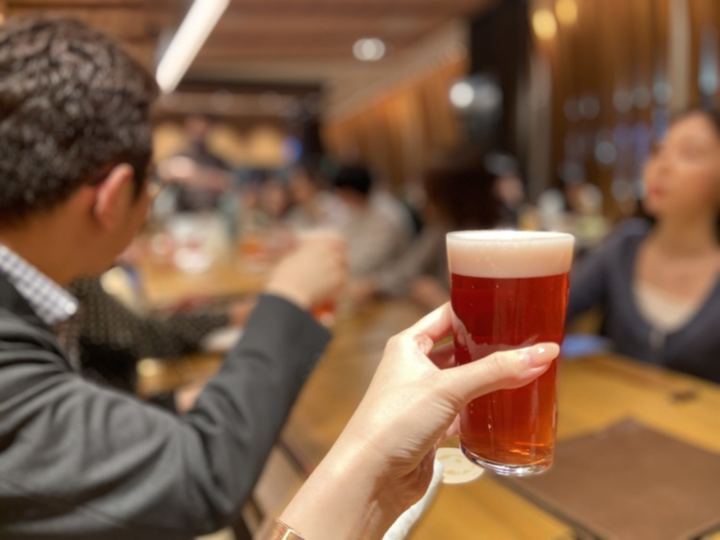 ▲宮崎県ご当地の真っ赤なビール「赤い糸」でカンパーイ🍺