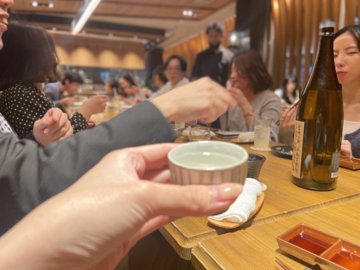 ▲ゴージャスな「杜氏潤平」のかがやきに、気持ちの高まりが隠せない編集部たち