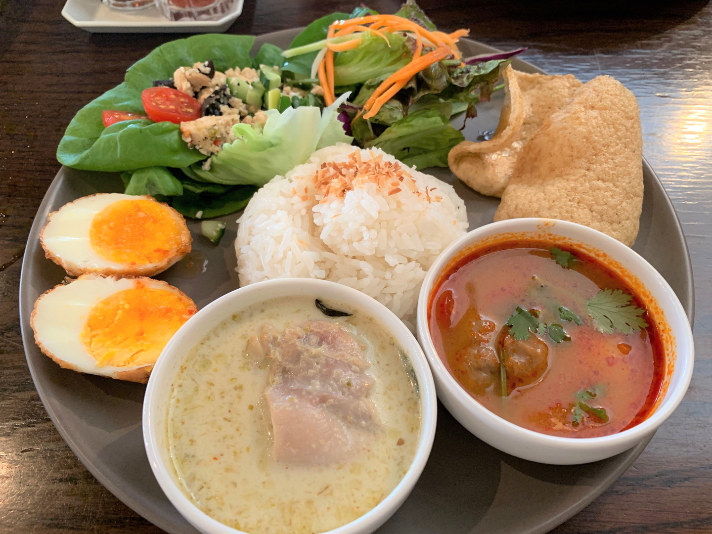 川沿いにあり、外観内観ともにオシャレでトムヤムクン、グリーンカレーともに日本人好みの食べやすさでした◎