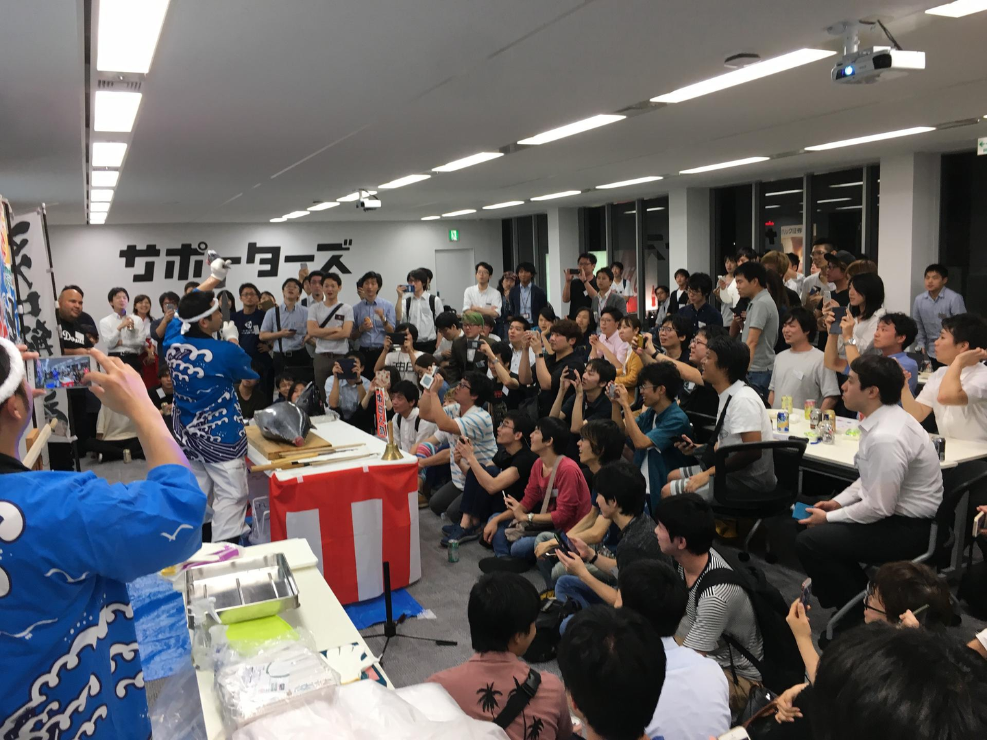 - 渋谷駅すぐの場所に新オフィス設立( ↑ 新オフィスが魚臭くなったマグロ解体ショー)