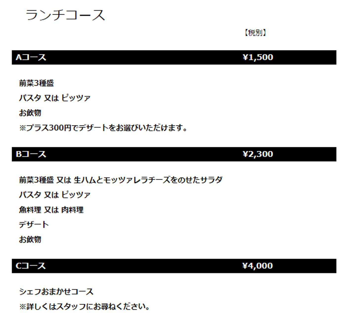 ランチは3種類のコースから選べます!