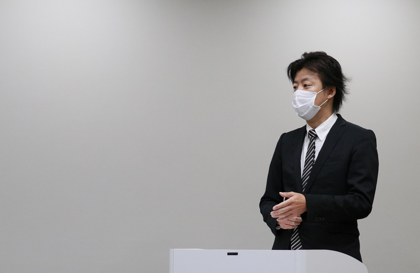写真)東京本社には、取締役の岡村が駆け付け、祝辞を伝えました。
