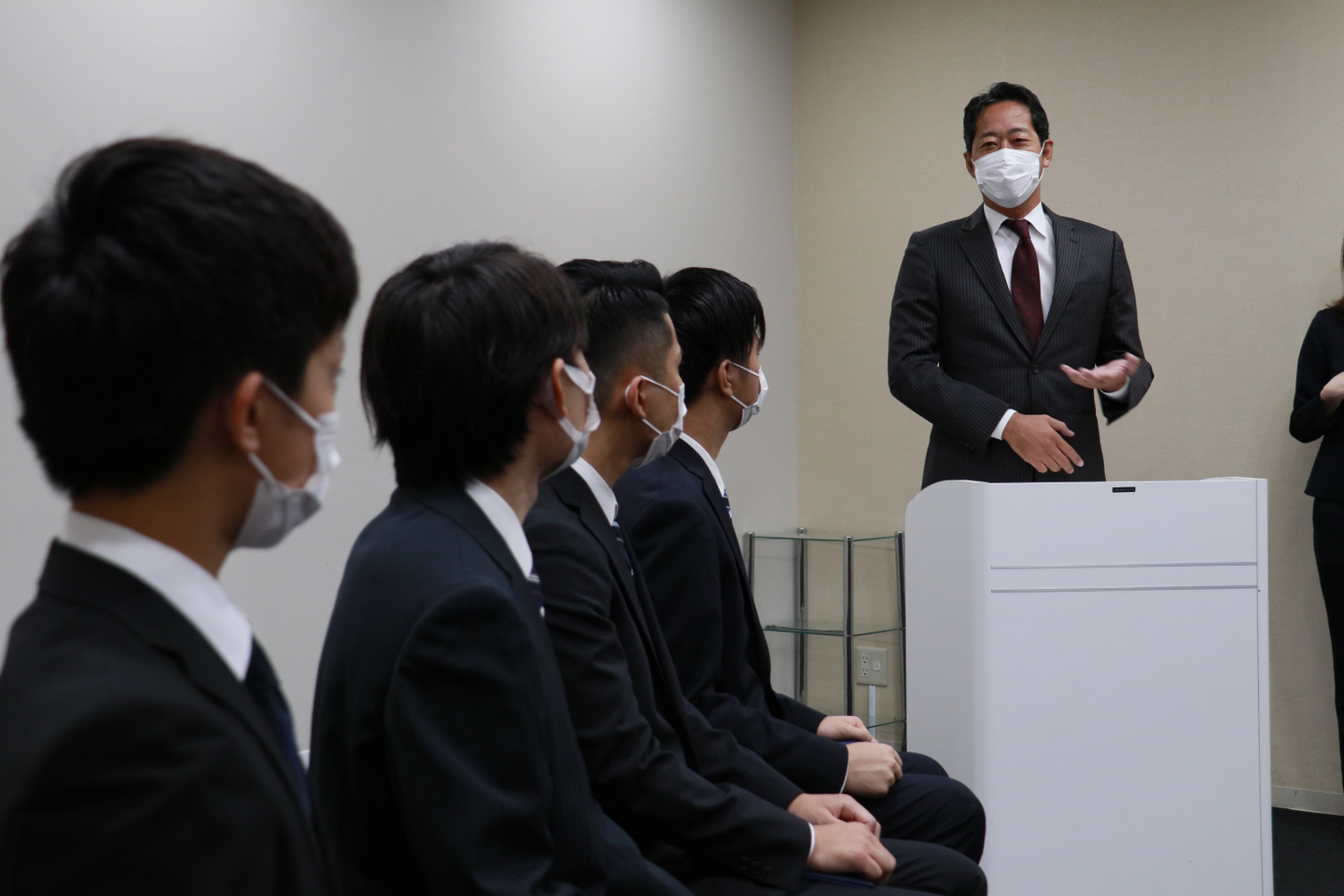 そして、例年内定式は大阪本社に全員集まって開催していましたが、今年はコロナウイルスの影響も考慮し、大阪本社、東京本社に分かれてオンライン接続しての開催となりました!