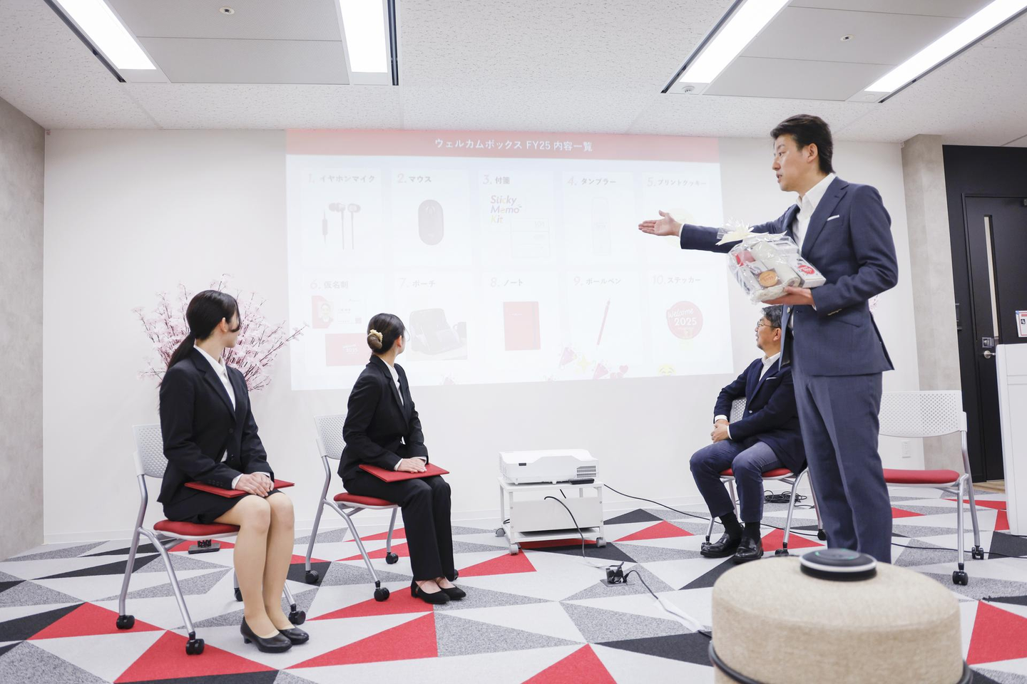 今年も昨年に引き続き、当社に入社してくれた感謝と歓迎の意を込めて、奥平より「WelcomeBox」の贈呈が行われました。