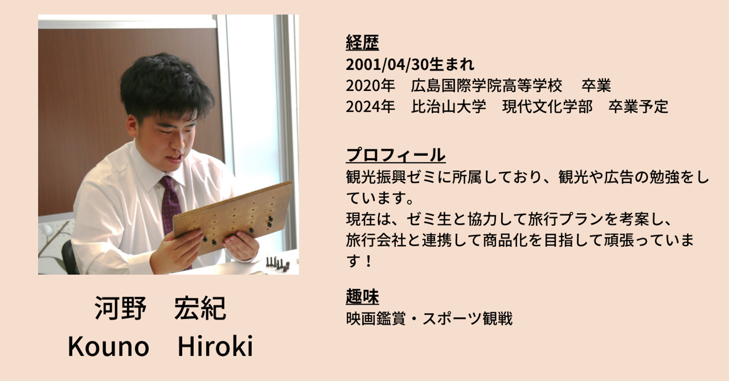 河野:私は、観光振興ゼミに所属していて、観光や広告の勉強をしています。大学3年生の時には、ゼミ活動でラジオ放送を行っていました。