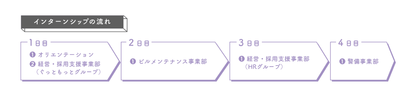 当社は4つの事業部から構成されています。各事業部それぞれの仕事が体験できるようにスケジュールを調整しました。