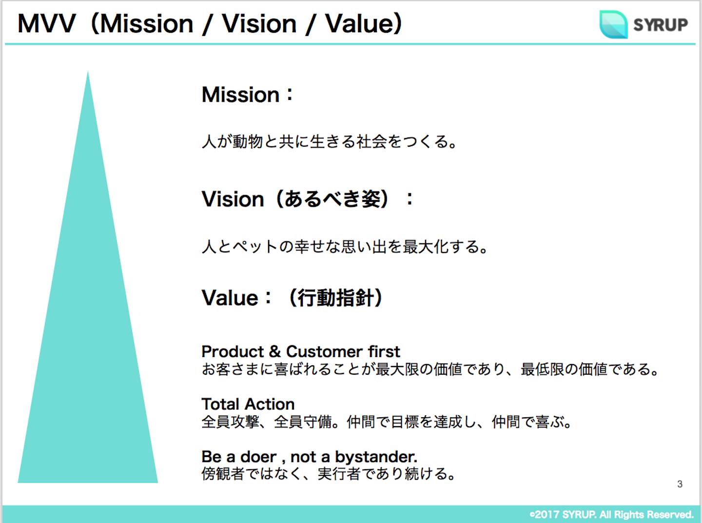 まだまだスタートアップの中のスタートアップですが、事業としての方向性、そしてシロップが果たす存在意義、行動指針を明確にしたいと思い、この度、社として初めてMission , Vision , Valueを策定することにしました。