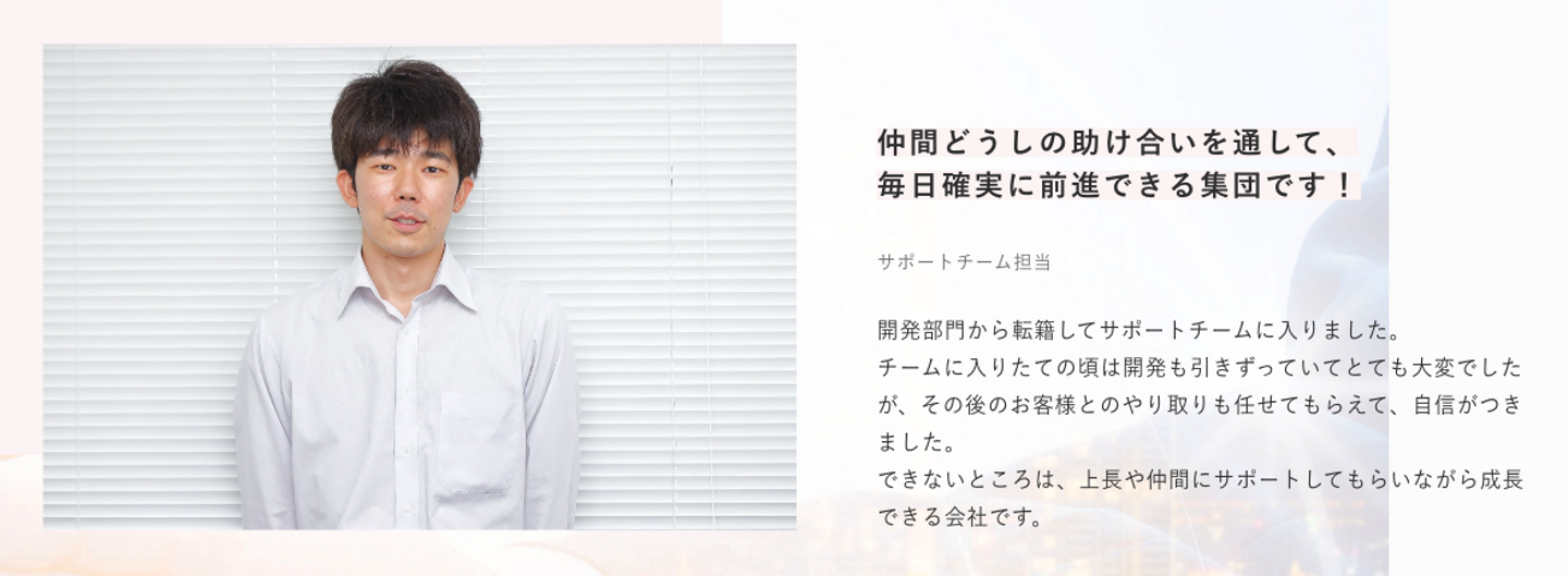 また、急な問い合わせ対応もあるため、報連相がしっかり出来る事も必須としています。