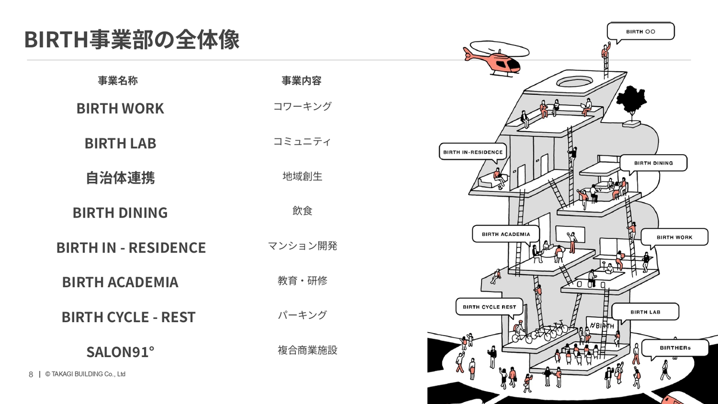 BIRTH事業部での取り組みをザっと紹介してみました!髙木ビルは、「不動産を活用したソフトの価値づくり」を大切にしています。不動産に様々な要素を掛け合わせながら、これからもどんどん、わくわくする、新しいコトを生んでいきます!