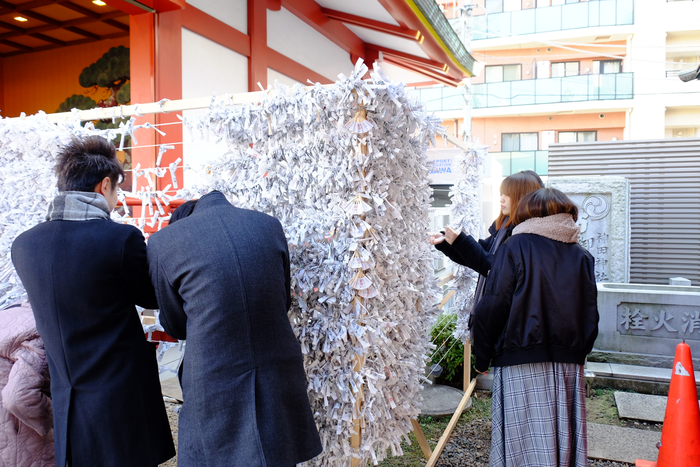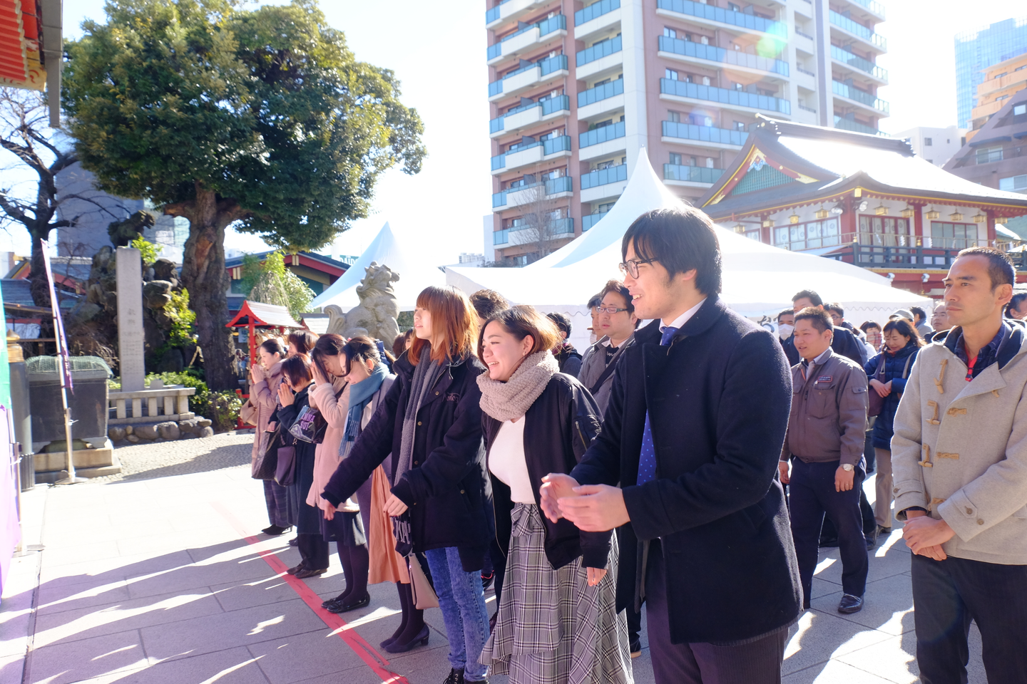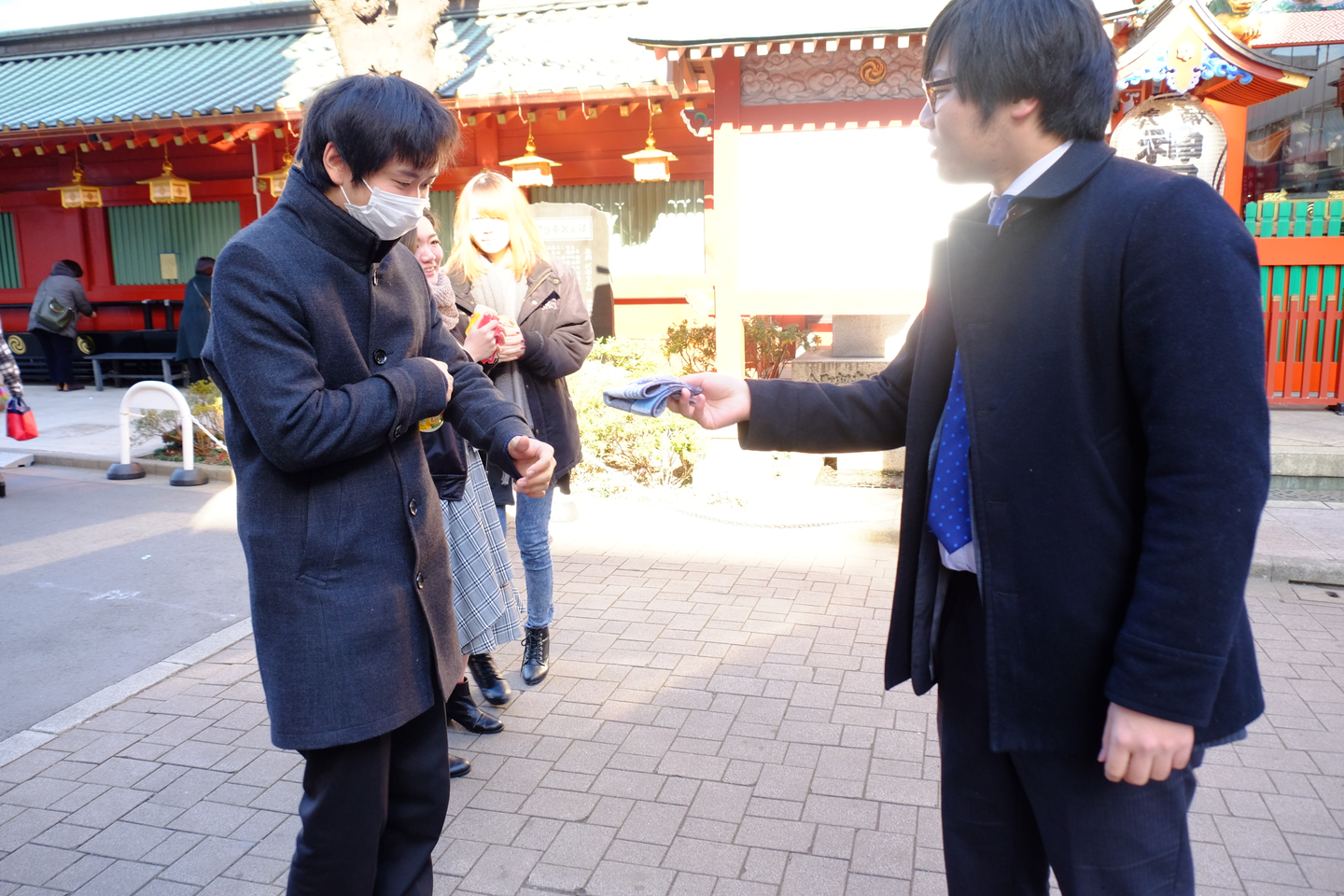 鳥居をくぐって神田明神に向かおうとすると、新入社員の高田だけ別の方向に向かっていきました。