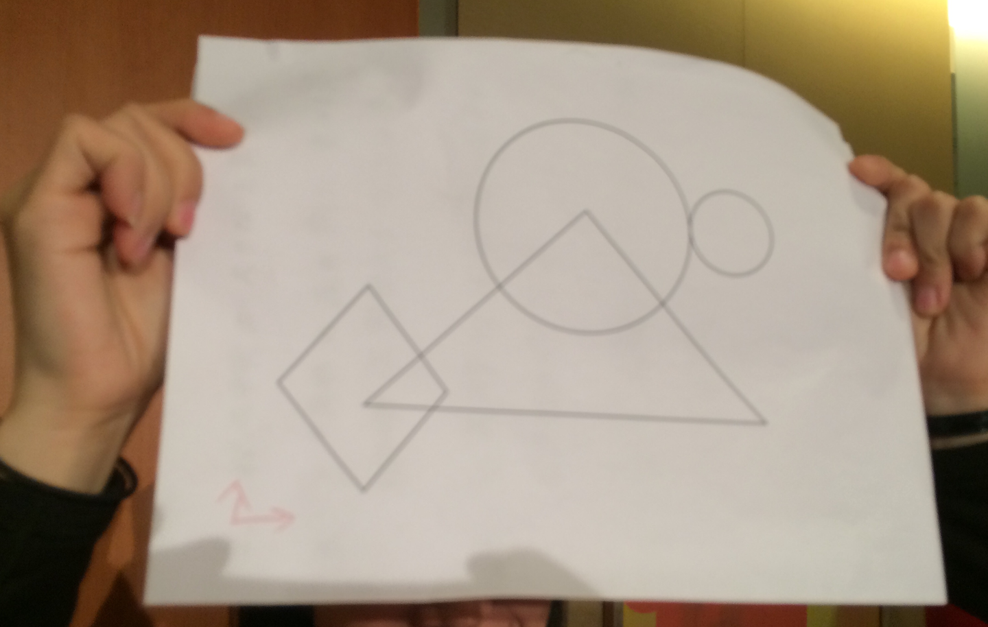 まずはエクササイズです。紙とペンを用意してください!読んでいる皆様も周りの人と一緒に、又は頭の中で想像しながらやってみてください! 下の説明に従って絵を描いてください。