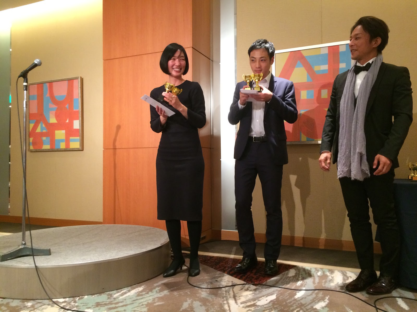 受賞者のみなさまから一言いただきました!そして、ミニトロフィーの授与です!