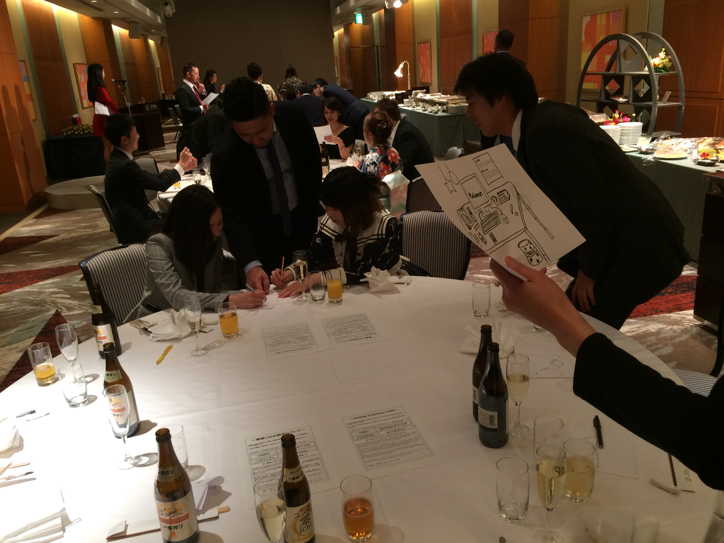 各テーブルにリーダー決めてもらい、リーダーの方のみに正解の絵を配り、リーダーは、その絵を口頭で説明します。