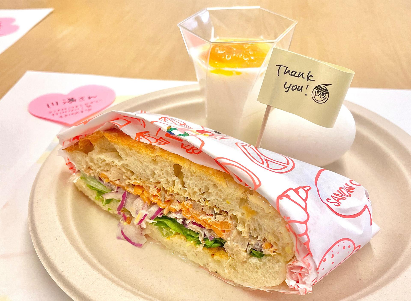 TAMモーニングは、毎月楽しめるような工夫が盛りだくさん!パン作りが得意なメンバーがメニューを考え、クリエイティブが大好きなデザイナーのメンバーがバナーを作り、また別のメンバーがランチョンマットやメッセージを用意しているそうです。さらに、毎回大量の買い出しをしてくれるメンバーも…!