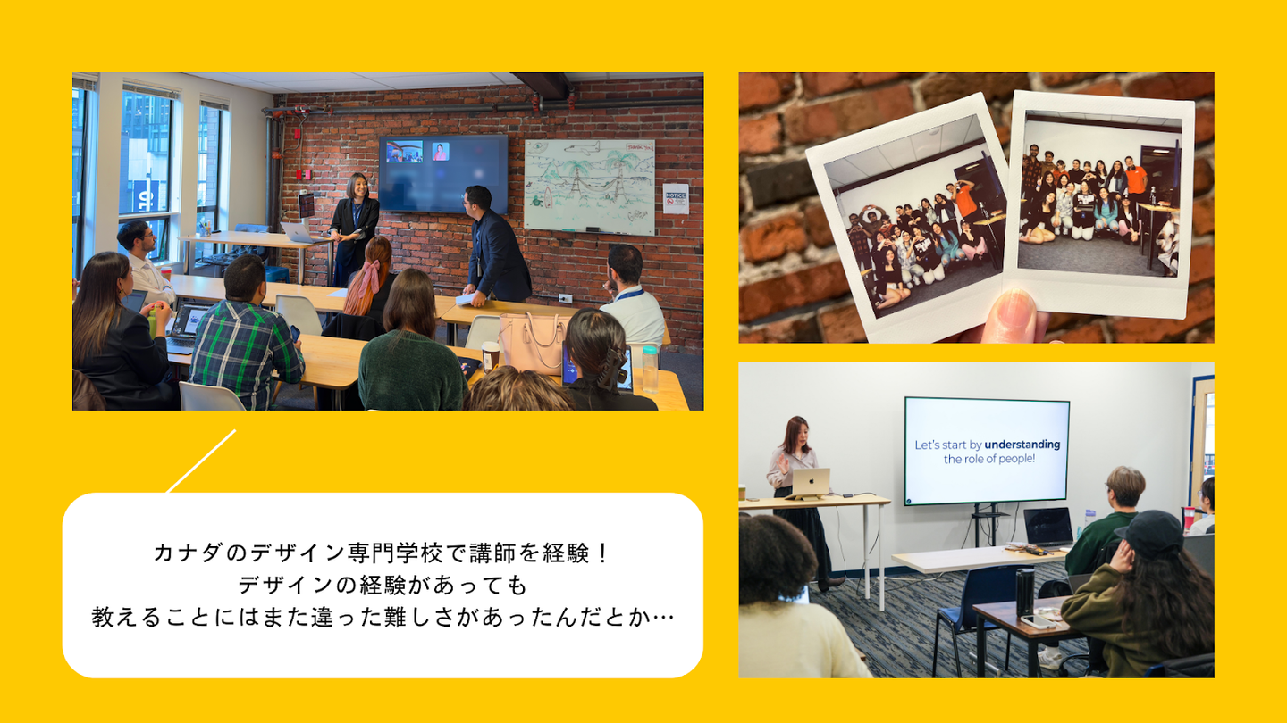 デザインについてもっと深く知りたいと思って、カナダのカレッジでUI/UXについても学びました。卒業後も学習を続け、日本や海外のお仕事を受けたり、昨年まではカナダのローカルカレッジで講師としてUX/UIについて教える立場も経験したりしていました。