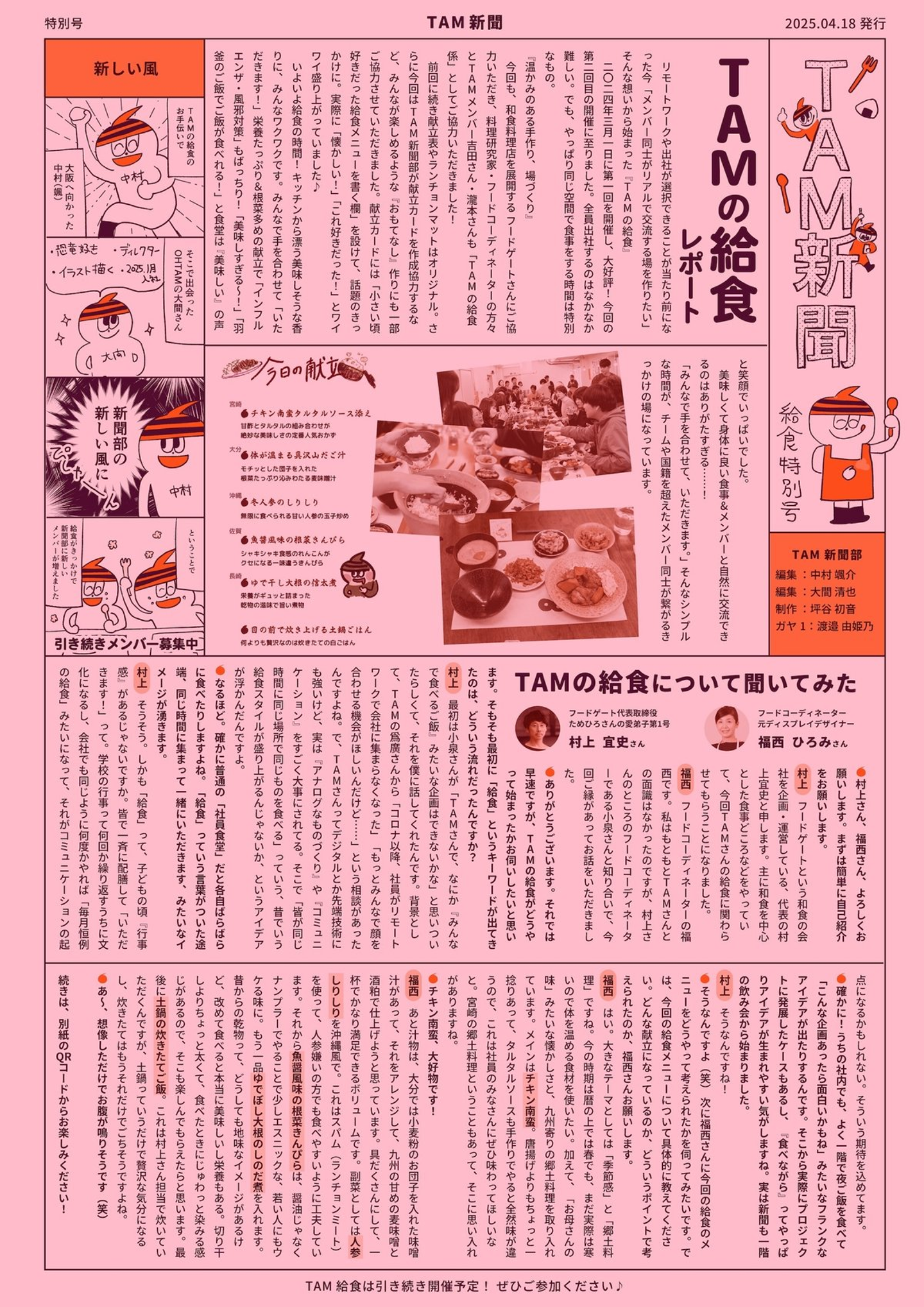 TAMの給食の様子は後日「TAM新聞」にも掲載