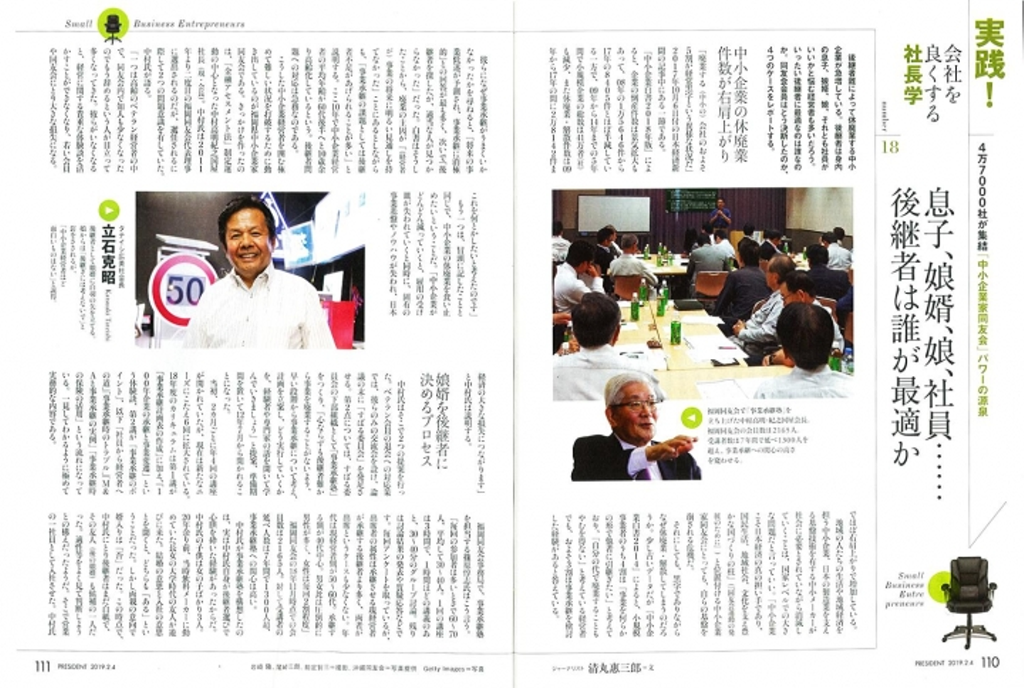 中国留学の経験がある娘婿は、中国でのビジネスに携わることを強く希望し、凸版印刷へ転職、希望通り上海勤務となった。しかし希望した上海では80人程度の現地法人に出向、幹部社員として切り盛りを任された。それがきっかけで徐々に義父の言う中小企業経営の面白さを実感する。ちょうどその頃、娘婿が帰郷、社内の会合で立石氏は突然、娘婿が数年後には入社し、後を継いでくれることになったと報告する。次いで立った娘婿が、「社長になってさらにいい会社にしていくために全力を尽くします」と挨拶。娘婿はその場の雰囲気に胸を熱くし後継者になることを決意したのだという。社内は将来への安心と希望とでもいうべき空気に満たされた。事実、間もなくローンを組んで自宅を建てるという若手社員が相次いだ。「後継者がはっきりしたことで、社員も自社の将来を確信できたのだと思います」と立石氏は語る。