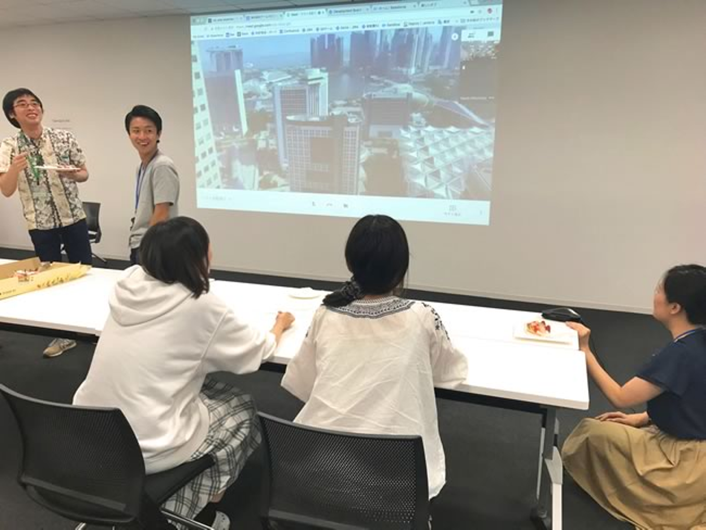 今回のお祝いは、シンガポールオフィスのメンバーとも中継をしながら喜びを分かち合いました。