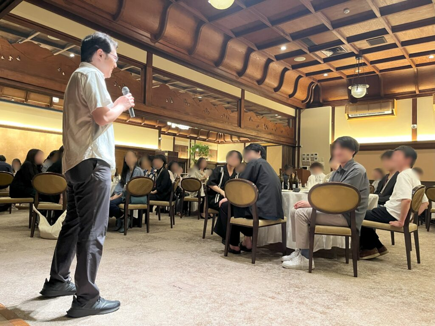 お腹をすかせた社員たちはソワソワしながらも、ここで2024年1月以降に入社された社員たちの挨拶が始まります!