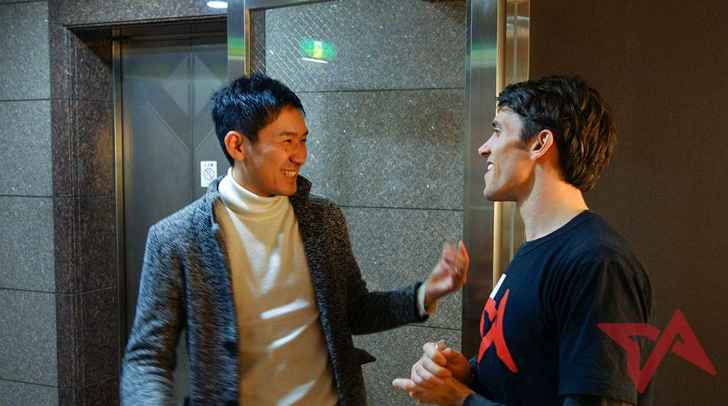 (写真 上:田中君と編集長のPeter. バイト仲間から、TIAでのチームメイトに。)