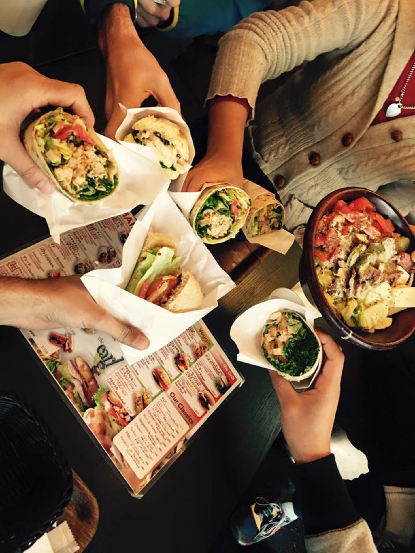 (写真上: チームランチの一コマ)