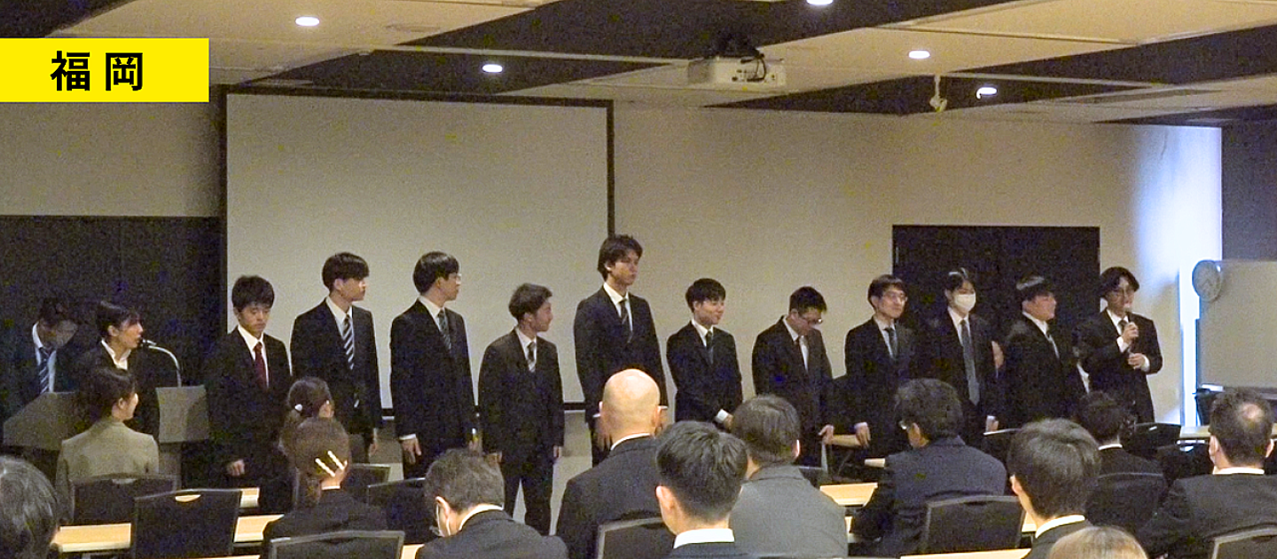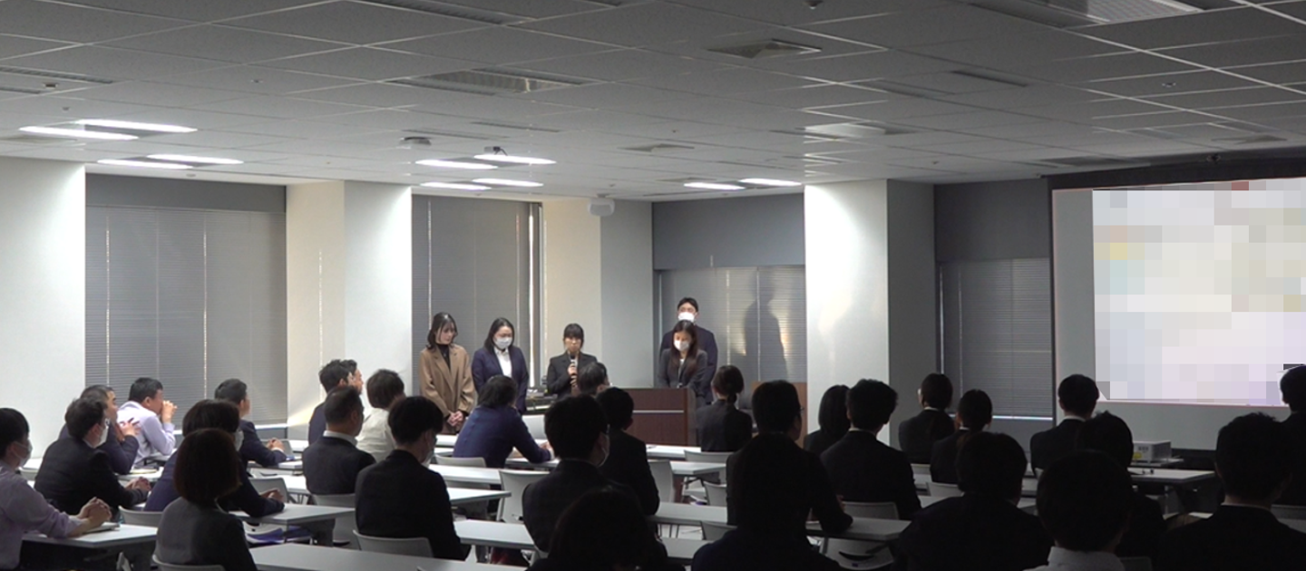 「苦労してしまうことがあっても、前向きに努力し頑張っていきたい」などと、緊張しながらも堂々と話す姿に、先輩社員たちから拍手が。