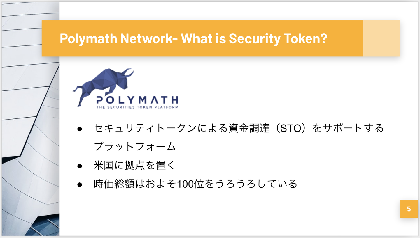 報告内容に入る前にセキュリティトークンの概要やPolymath、STO(Security Token Offering)についての説明です。