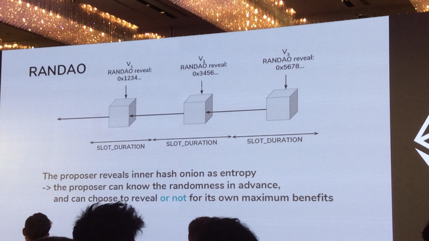 アルゴリズムとはいえ、いかにランダム性(恣意性を排除)を実現するかが重要であり、そのためにRANDAO(Random Decentralized Autonomous Organization)という新たな構想が上がっているとのことでした。
