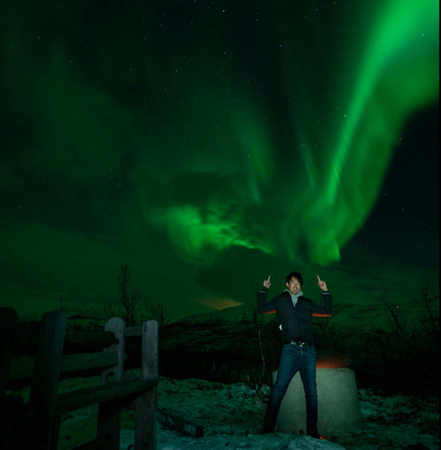 念願だった海外での仕事先、スウェーデンにてオーロラと。