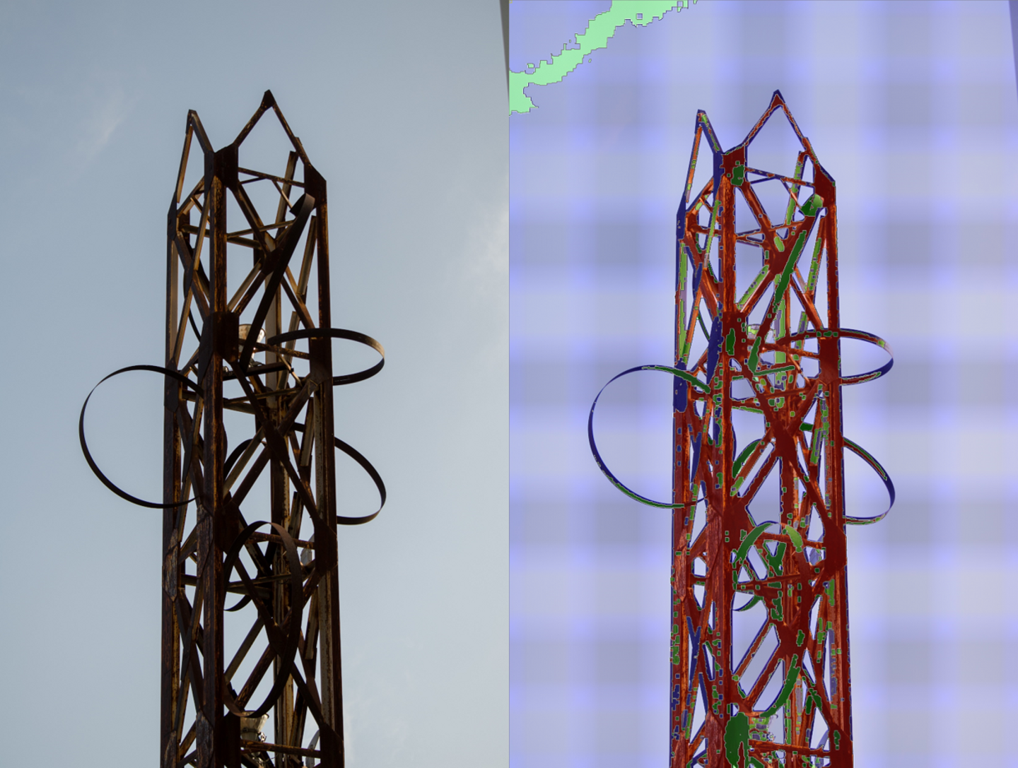 2.鉄塔建造物の錆の腐食レベルを自動判定