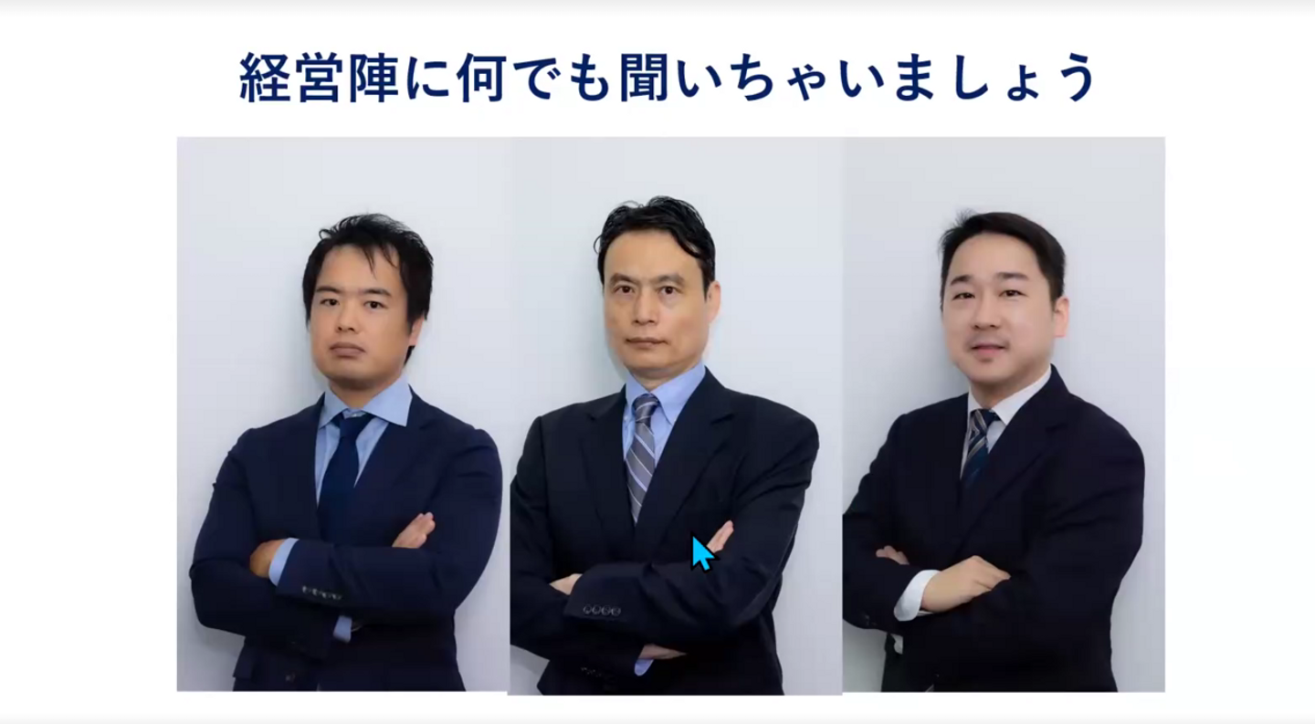 今まで一番大変だったことや経営陣が大切なときに行くパワースポットなどまで幅広い質問が飛び交いました。そこで一番ほっこりした回答と熱いメッセージをお見せします。