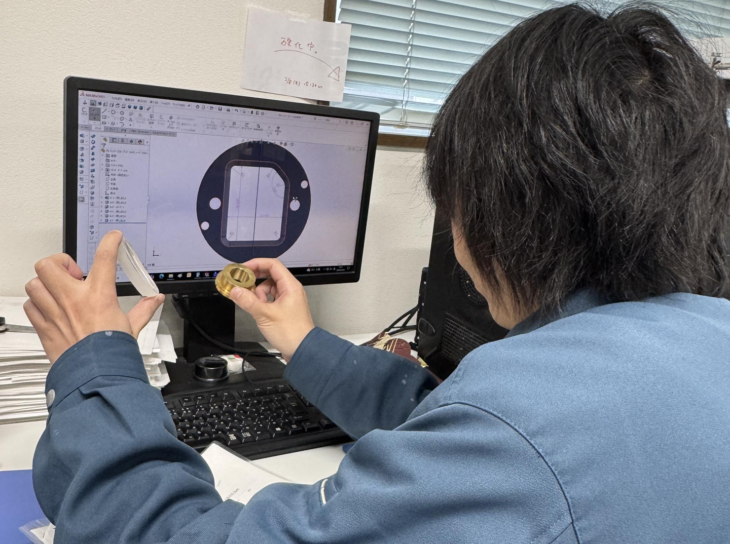 京都工場では金型の加工がメインで、お客様からの依頼をわかりやすく噛み砕き、ご希望に沿って加工ができるように図面に起こしています。