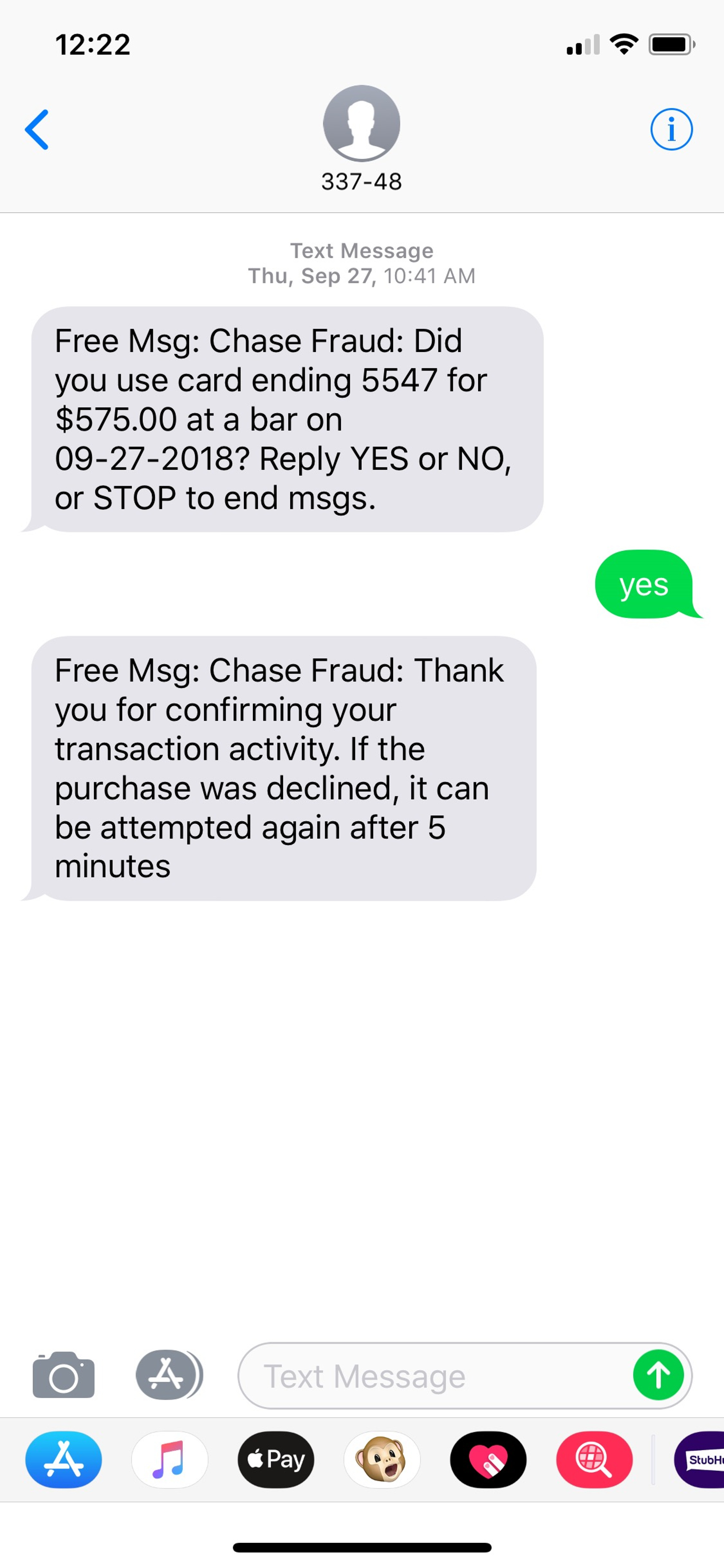 ここでもBotが仕込まれているので、クレジットカード会社からの疑いメッセージに「yes(この利用は認識しています)」と返信をするだけで対応が完了します。もしここで、身に覚えのない利用内容であれば「no」と返信するだけでカードを止めることができるのです。