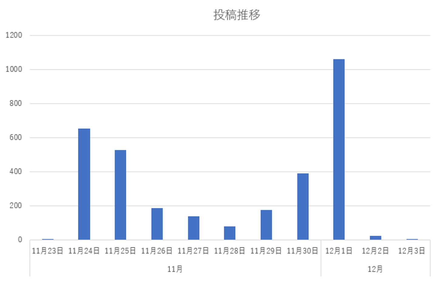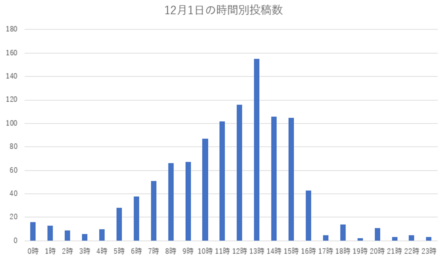 最も投稿が伸びたのは決戦当日の12月1日で、1日を通して多くの投稿がありました。