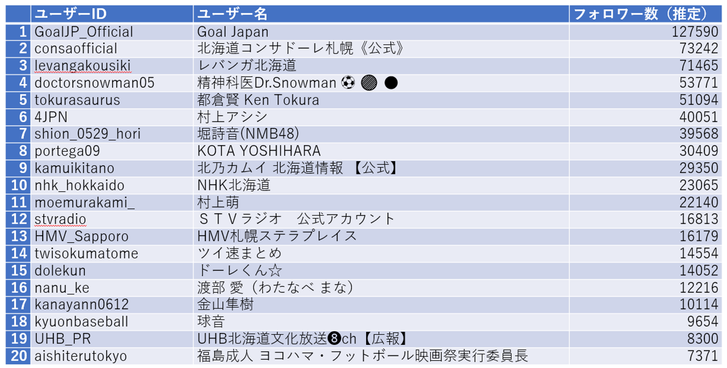 都倉選手と、チーム公式が多いですが北海道出身のアイドルやイラストが上手なサポーターさんもランキングされています。