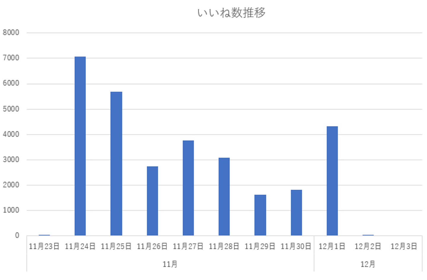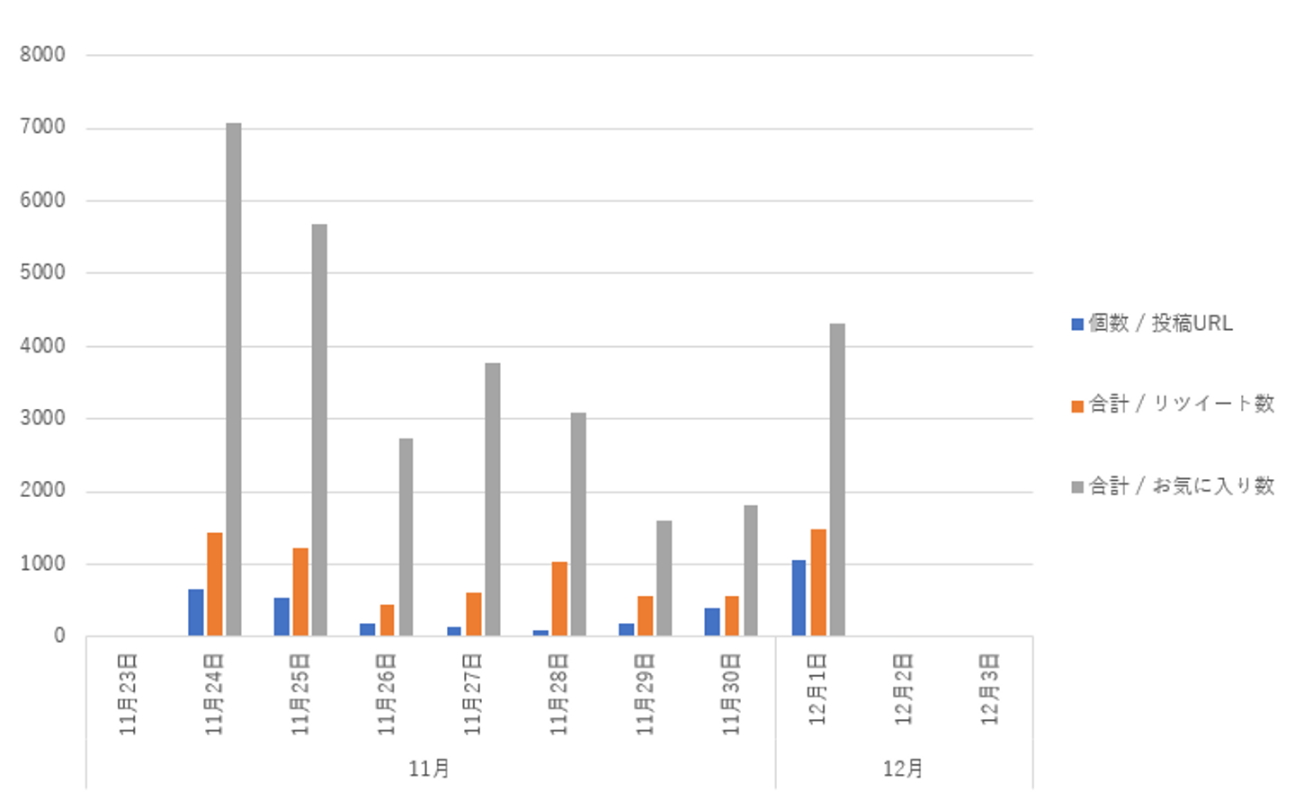 このグラフでは、投稿数やエンゲージメントの推移とは違い11月30日と12月1日が大きな数値となっています。