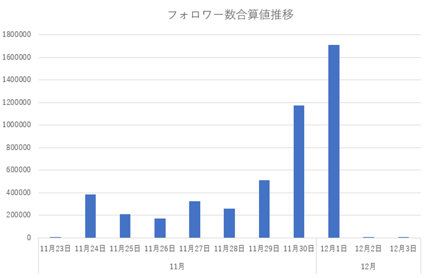 また、投稿者のフォロワー数の合算値を日別のまとめたものが下記となります。