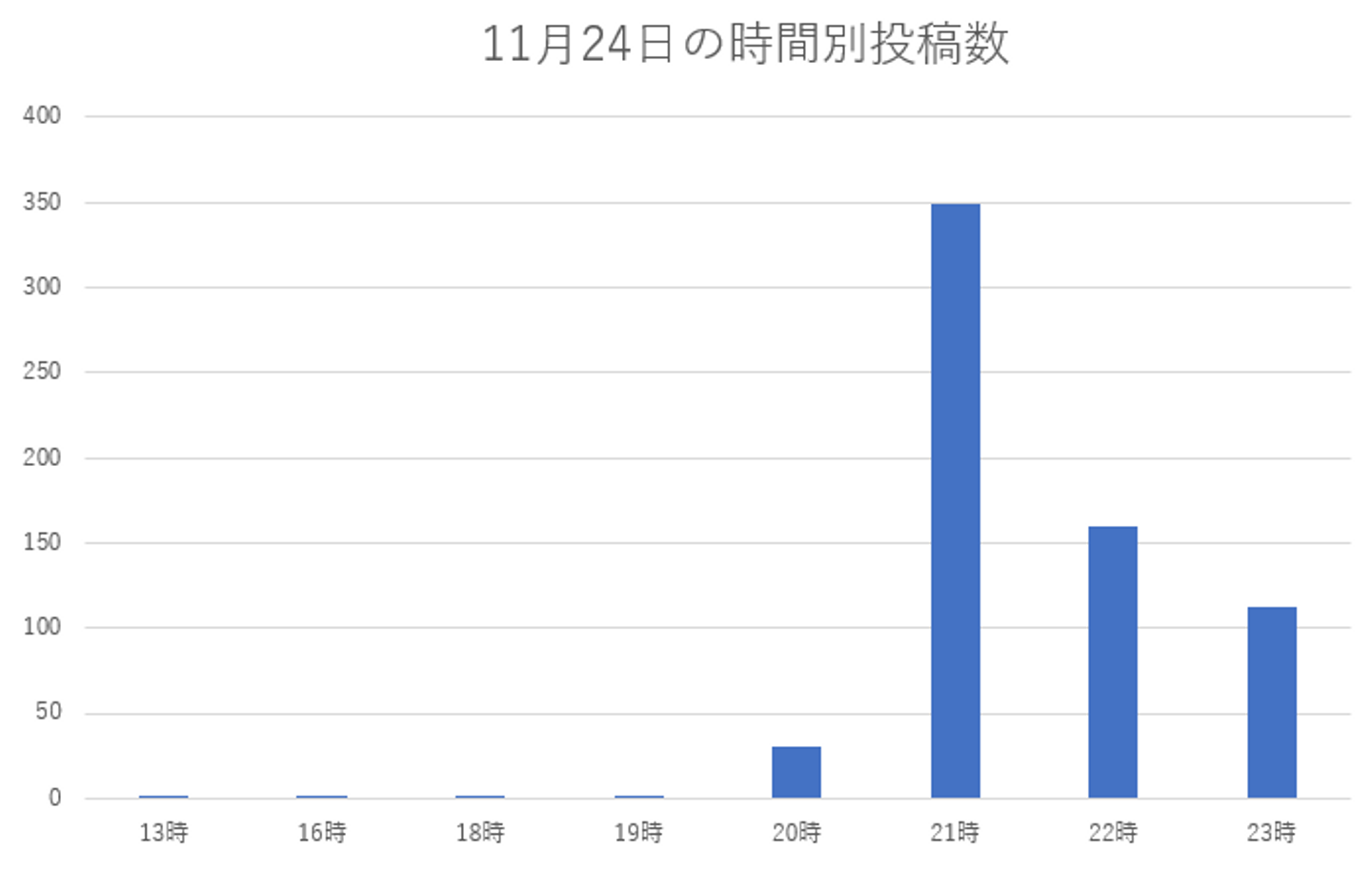 都倉選手が呼びかけた11月24日は試合当日の12月1日を除く期間では、最も投稿数が多く、当日の推移も21時台、22時台は投稿数も大きく伸びていました。