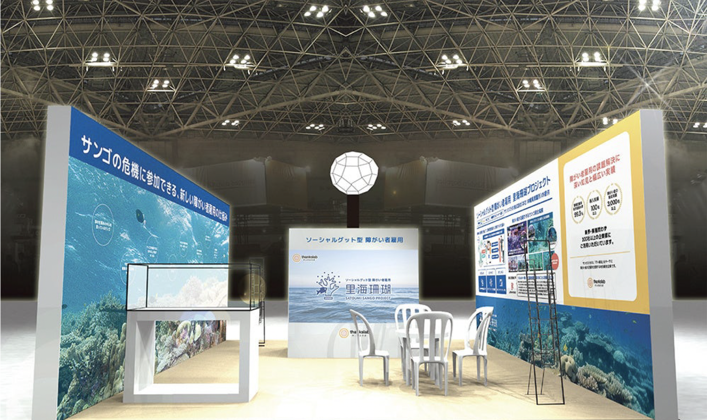 出展の目的としては、新しい障がい者雇用の仕組みである珊瑚プロジェクトを市場に出した際にどういう反応になるかを見るという点です。