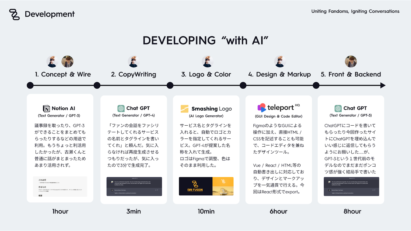 - ChatGPT APIの使用用途:アイコンやファンのこれまでのデータを読ませ、その中でハイライトとなる情報を抽出する