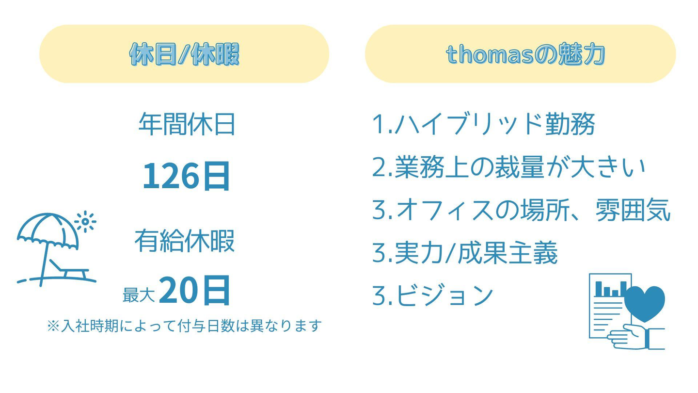 ・メンバーに聞いたthomasの魅力は「1位 ハイブリッド勤務」「2位 業務上の裁量が大きい」など、働き方の自由度を気に入っているメンバーが多数でした。