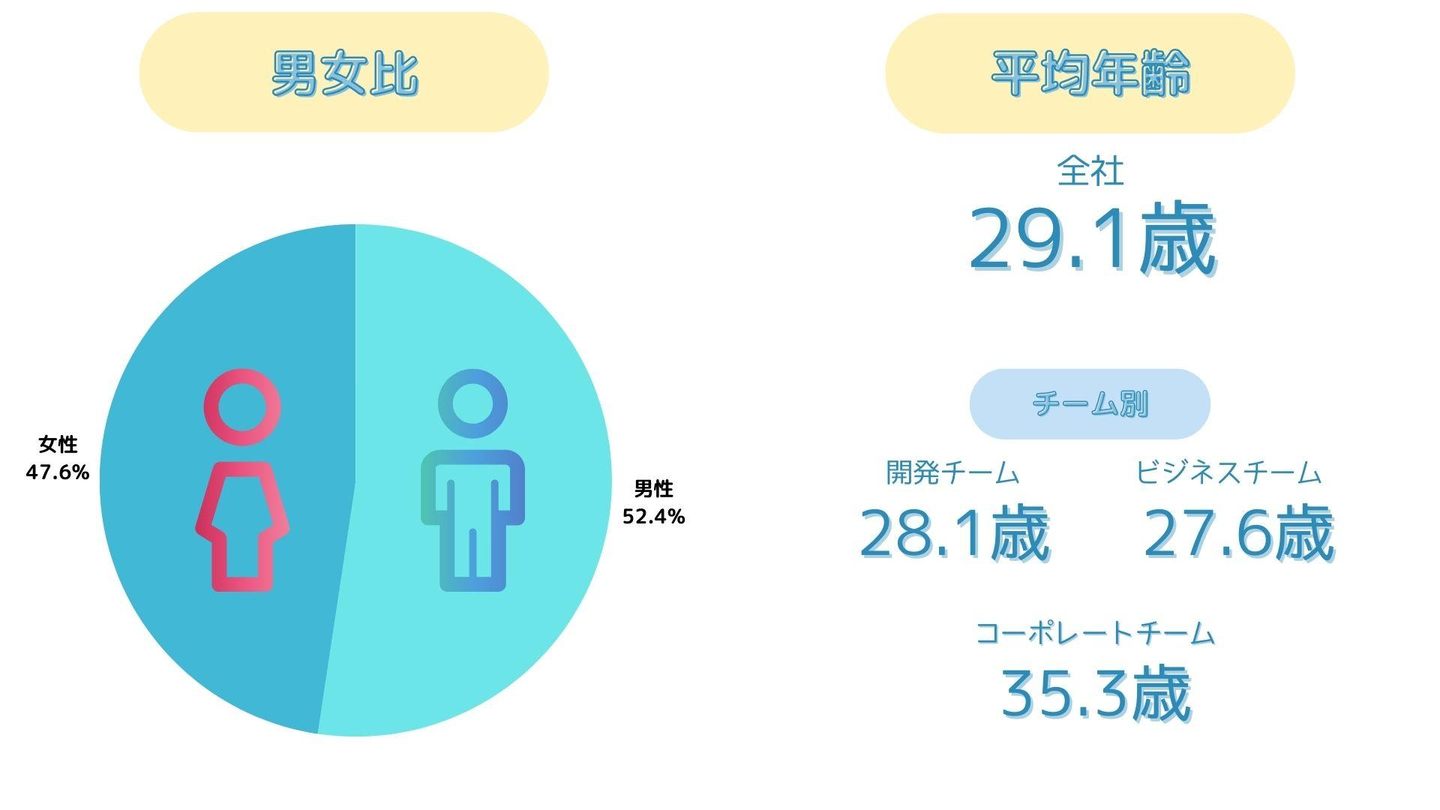 ・平均年齢は、同業界の平均年齢(40.3歳)よりも10歳ほど低いメンバーで構成されています。