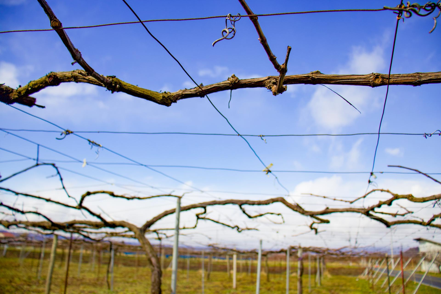 収クオリティを保つための枝の剪定作業を行っていただいた後で、枝だけの状態のぶどうの木です。